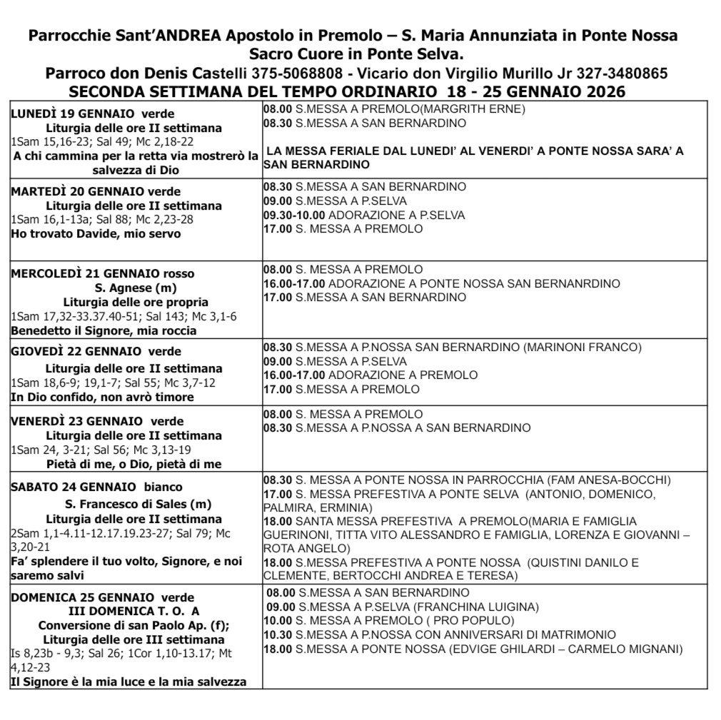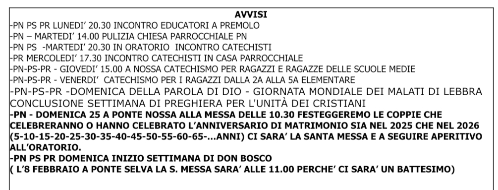 Eventi Comunità PRemolo – Ponte Nossa – Ponte Selva
