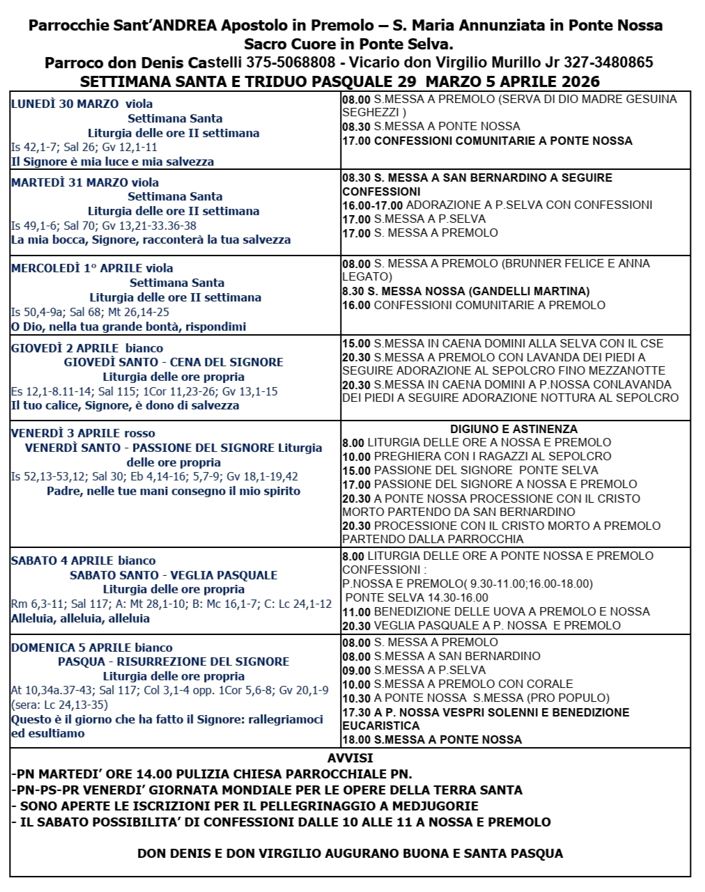 Tel. Parrocchia-Oratorio 035/701034